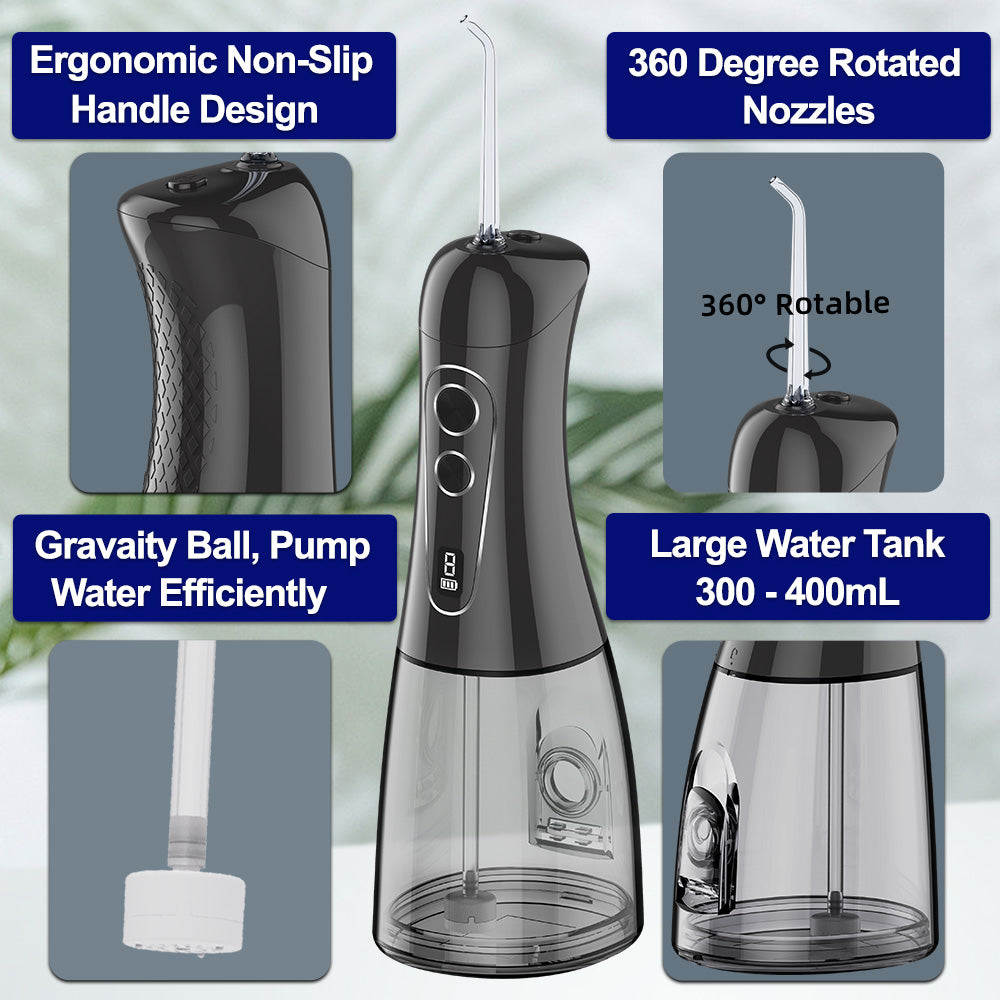Achieve a professional clean every day with our Multi Portable Oral Irrigator. This powerful yet gentle Water Flosser uses a targeted stream of water to remove plaque and food debris where brushing can't reach. Its compact, waterproof design is perfect for travel and home use, making dental care effortless. With multiple pressure settings and interchangeable tips, it's customized for your entire family's needs. Transform your oral hygiene routine and get a dentist-fresh feeling without the hassle of traditional floss.